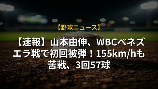 【速報】山本由伸、WBCベネズエラ戦で初回被弾!155km/hも苦戦、3回57球