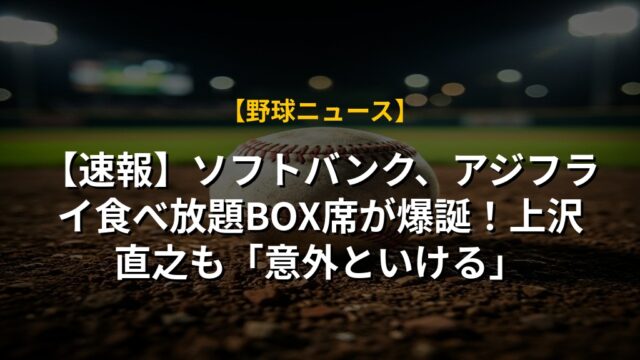【速報】ソフトバンク、アジフライ食べ放題BOX席が爆誕!上沢直之も「意外といける」