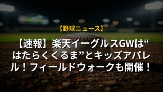 【速報】楽天イーグルスGWは“はたらくくるま”とキッズアパレル!フィールドウォークも開催!