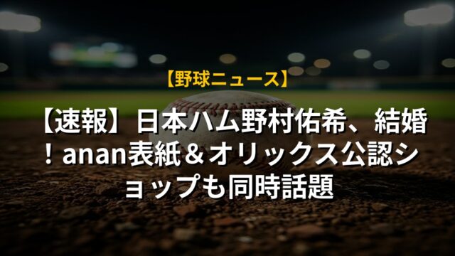 【速報】日本ハム野村佑希、結婚!anan表紙&オリックス公認ショップも同時話題