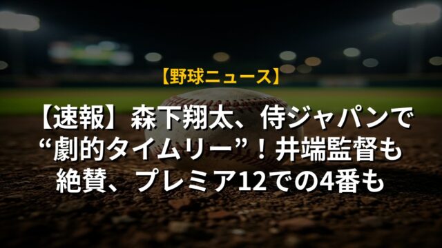 【速報】森下翔太、侍ジャパンで“劇的タイムリー”!井端監督も絶賛、プレミア12での4番も