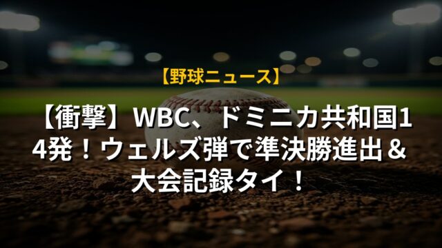 【衝撃】WBC、ドミニカ共和国14発!ウェルズ弾で準決勝進出&大会記録タイ!