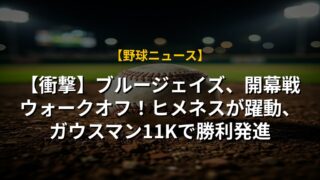 【衝撃】ブルージェイズ、開幕戦ウォークオフ!ヒメネスが躍動、ガウスマン11Kで勝利発進
