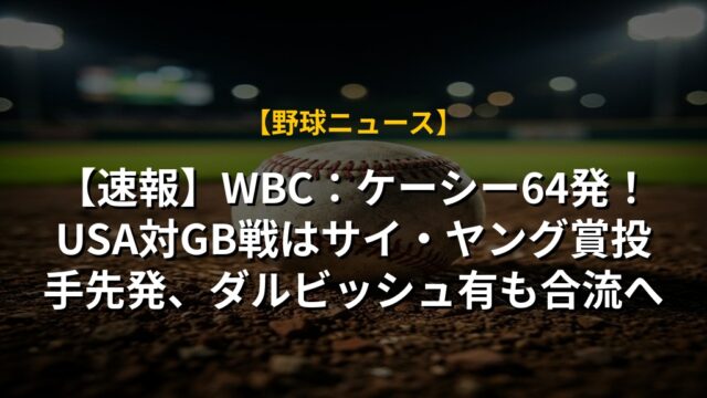【速報】WBC:ケーシー64発!USA対GB戦はサイ・ヤング賞投手先発、ダルビッシュ有も合流へ