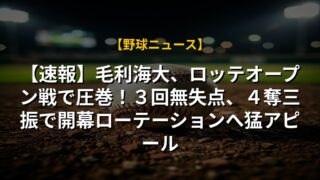 【速報】毛利海大、ロッテオープン戦で圧巻!3回無失点、4奪三振で開幕ローテーションへ猛アピール