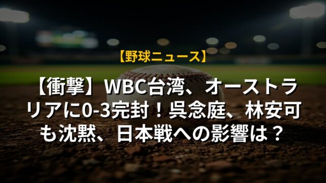 【衝撃】WBC台湾、オーストラリアに0-3完封!呉念庭、林安可も沈黙、日本戦への影響は?