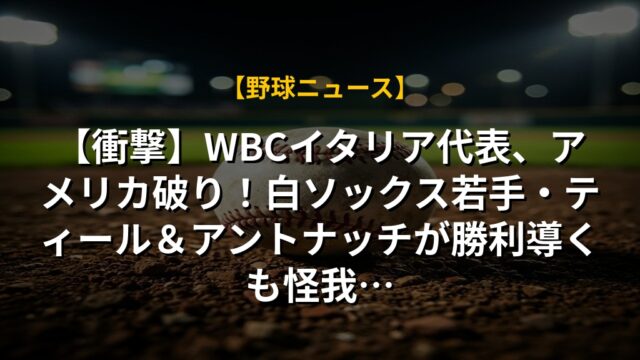 【衝撃】WBCイタリア代表、アメリカ破り!白ソックス若手・ティール&アントナッチが勝利導くも怪我…