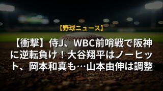 【衝撃】侍J、WBC前哨戦で阪神に逆転負け!大谷翔平はノーヒット、岡本和真も…山本由伸は調整