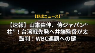 【速報】山本由伸、侍ジャパン“柱”!台湾戦先発へ井端監督が太鼓判!WBC連覇への鍵