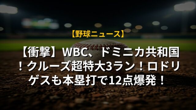【衝撃】WBC、ドミニカ共和国!クルーズ超特大3ラン!ロドリゲスも本塁打で12点爆発!