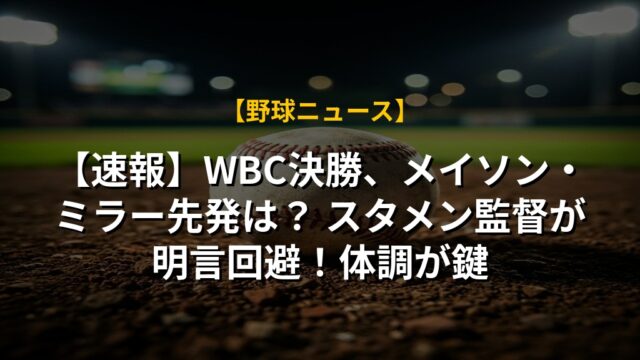 【速報】WBC決勝、メイソン・ミラー先発は? スタメン監督が明言回避!体調が鍵