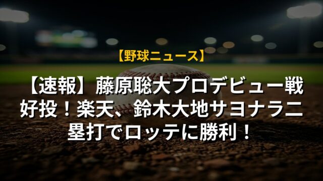 【速報】藤原聡大プロデビュー戦好投!楽天、鈴木大地サヨナラ二塁打でロッテに勝利!