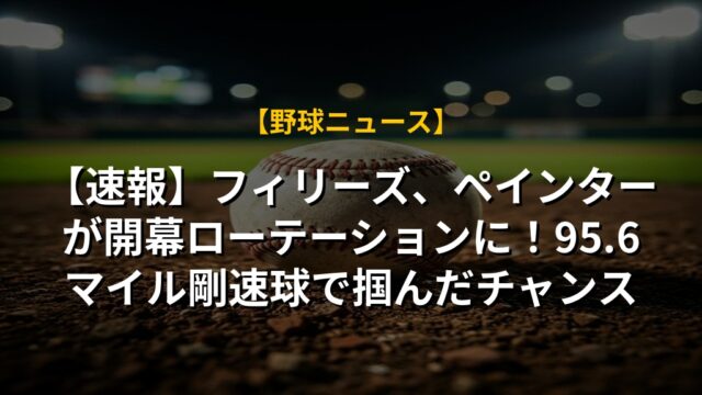 【速報】フィリーズ、ペインターが開幕ローテーションに!95.6マイル剛速球で掴んだチャンス