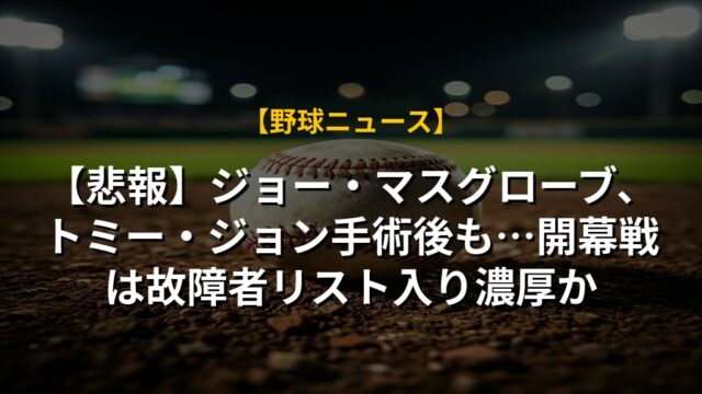 【悲報】ジョー・マスグローブ、トミー・ジョン手術後も…開幕戦は故障者リスト入り濃厚か