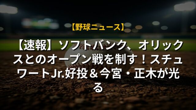 【速報】ソフトバンク、オリックスとのオープン戦を制す!スチュワートJr.好投&今宮・正木が光る
