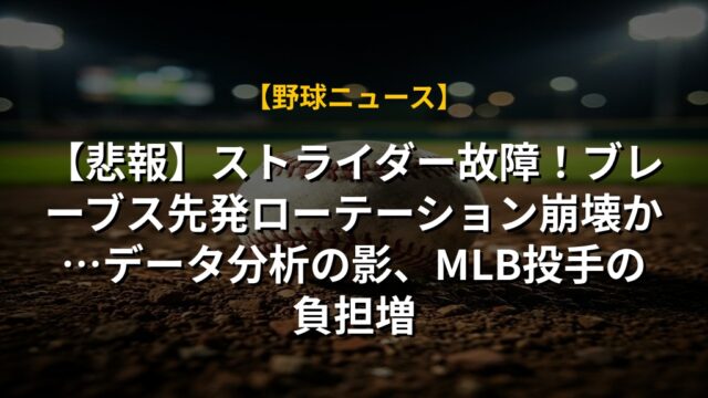 【悲報】ストライダー故障!ブレーブス先発ローテーション崩壊か…データ分析の影、MLB投手の負担増