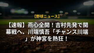 【速報】燕心全開!吉村先発で開幕戦へ、川端慎吾「チャンス川端」が神宮を熱狂!