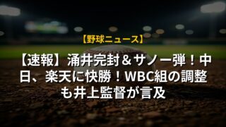【速報】涌井完封&サノー弾!中日、楽天に快勝!WBC組の調整も井上監督が言及