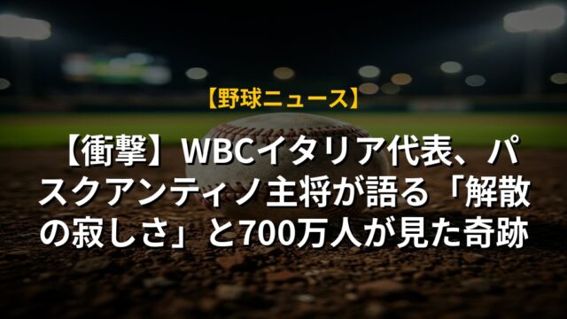 【衝撃】WBCイタリア代表、パスクアンティノ主将が語る「解散の寂しさ」と700万人が見た奇跡