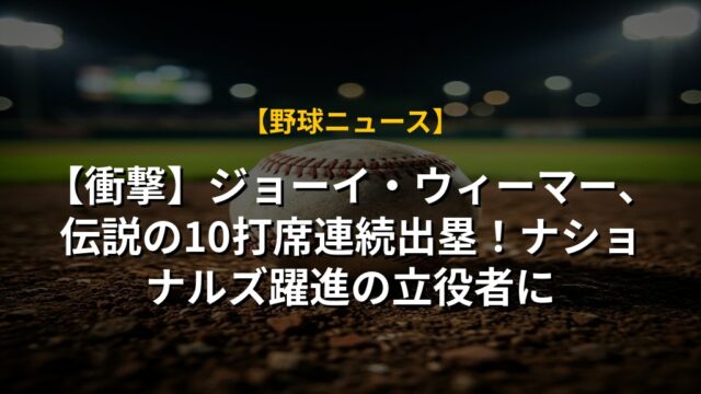 【衝撃】ジョーイ・ウィーマー、伝説の10打席連続出塁!ナショナルズ躍進の立役者に