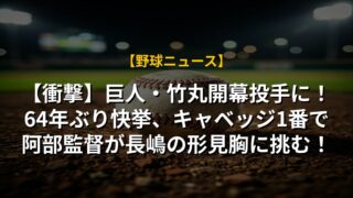 【衝撃】巨人・竹丸開幕投手に!64年ぶり快挙、キャベッジ1番で阿部監督が長嶋の形見胸に挑む!