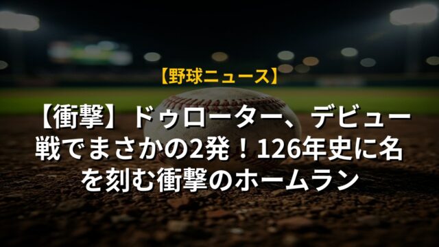 【衝撃】ドゥローター、デビュー戦でまさかの2発!126年史に名を刻む衝撃のホームラン