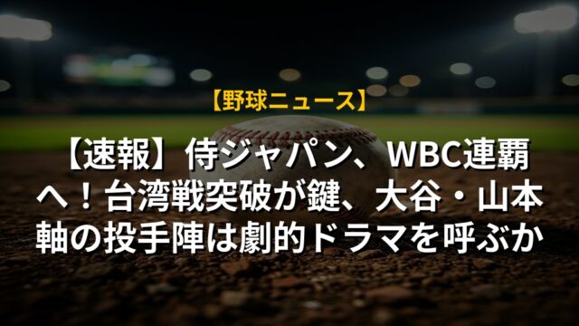 【速報】侍ジャパン、WBC連覇へ!台湾戦突破が鍵、大谷・山本軸の投手陣は劇的ドラマを呼ぶか