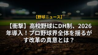【衝撃】高校野球にDH制、2026年導入!プロ野球界全体を揺るがす改革の真意とは?