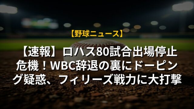 【速報】ロハス80試合出場停止危機!WBC辞退の裏にドーピング疑惑、フィリーズ戦力に大打撃