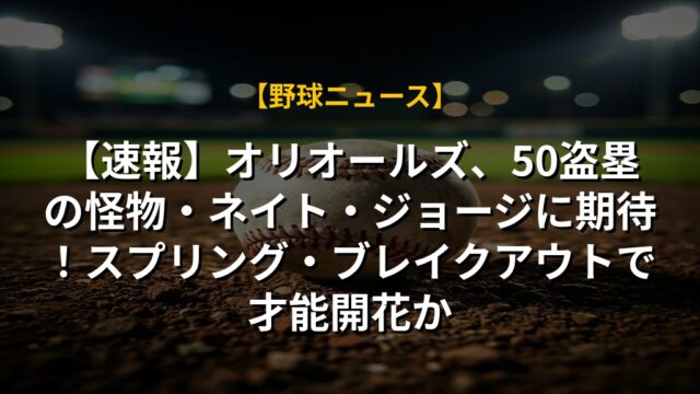 【速報】オリオールズ、50盗塁の怪物・ネイト・ジョージに期待!スプリング・ブレイクアウトで才能開花か