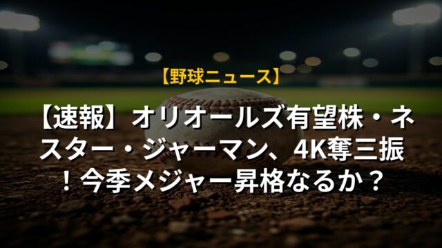 【速報】オリオールズ有望株・ネスター・ジャーマン、4K奪三振!今季メジャー昇格なるか?