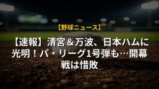 【速報】清宮&万波、日本ハムに光明!パ・リーグ1号弾も…開幕戦は惜敗