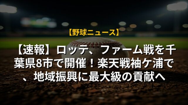 【速報】ロッテ、ファーム戦を千葉県8市で開催!楽天戦袖ケ浦で、地域振興に最大級の貢献へ