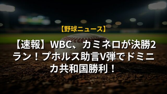 【速報】WBC、カミネロが決勝2ラン!プホルス助言V弾でドミニカ共和国勝利!