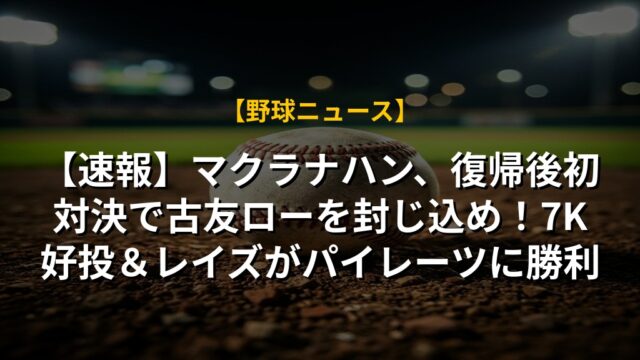 【速報】マクラナハン、復帰後初対決で古友ローを封じ込め!7K好投&レイズがパイレーツに勝利