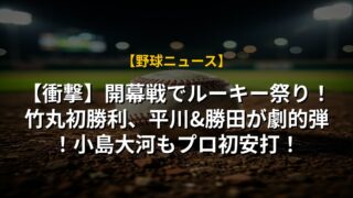 【衝撃】開幕戦でルーキー祭り!竹丸初勝利、平川&勝田が劇的弾!小島大河もプロ初安打!