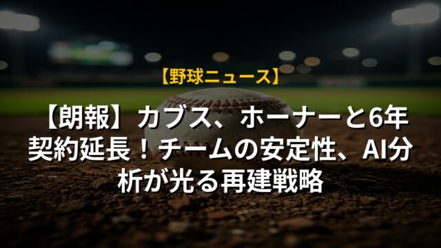 【朗報】カブス、ホーナーと6年契約延長!チームの安定性、AI分析が光る再建戦略