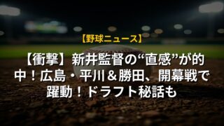 【衝撃】新井監督の“直感”が的中!広島・平川&勝田、開幕戦で躍動!ドラフト秘話も