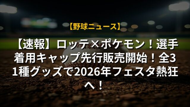 【速報】ロッテ×ポケモン!選手着用キャップ先行販売開始!全31種グッズで2026年フェスタ熱狂へ!