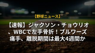 【速報】ジャクソン・チョウリオ、WBCで左手骨折!ブルワーズ痛手、離脱期間は最大4週間か