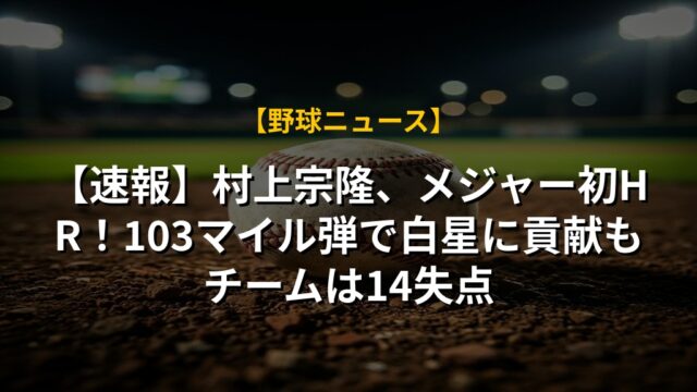 【速報】村上宗隆、メジャー初HR!103マイル弾で白星に貢献もチームは14失点