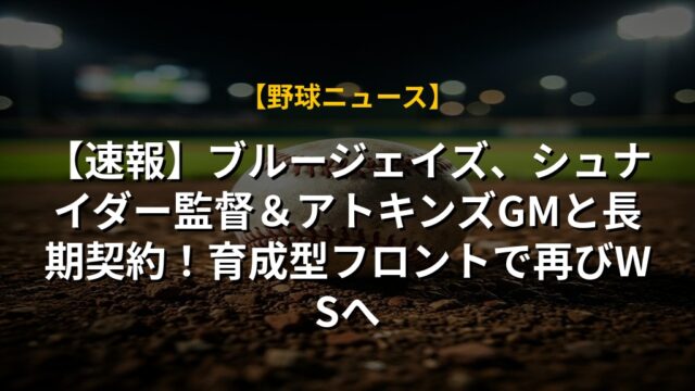 【速報】ブルージェイズ、シュナイダー監督&アトキンズGMと長期契約!育成型フロントで再びWSへ