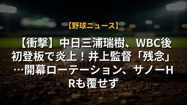 【衝撃】中日三浦瑞樹、WBC後初登板で炎上!井上監督「残念」…開幕ローテーション、サノーHRも覆せず