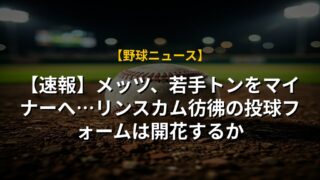 【速報】メッツ、若手トンをマイナーへ…リンスカム彷彿の投球フォームは開花するか