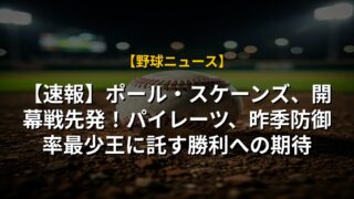 【速報】ポール・スケーンズ、開幕戦先発!パイレーツ、昨季防御率最少王に託す勝利への期待