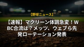 【速報】マクリーン体調急変!WBC合流は?メッツ、ウェブら先発ローテーション発表