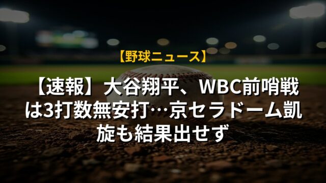 【速報】大谷翔平、WBC前哨戦は3打数無安打…京セラドーム凱旋も結果出せず
