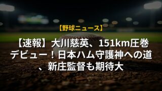 【速報】大川慈英、151km圧巻デビュー!日本ハム守護神への道、新庄監督も期待大