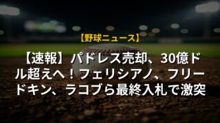 【速報】パドレス売却、30億ドル超えへ!フェリシアノ、フリードキン、ラコブら最終入札で激突