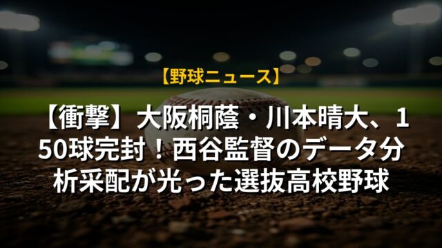 【衝撃】大阪桐蔭・川本晴大、150球完封!西谷監督のデータ分析采配が光った選抜高校野球